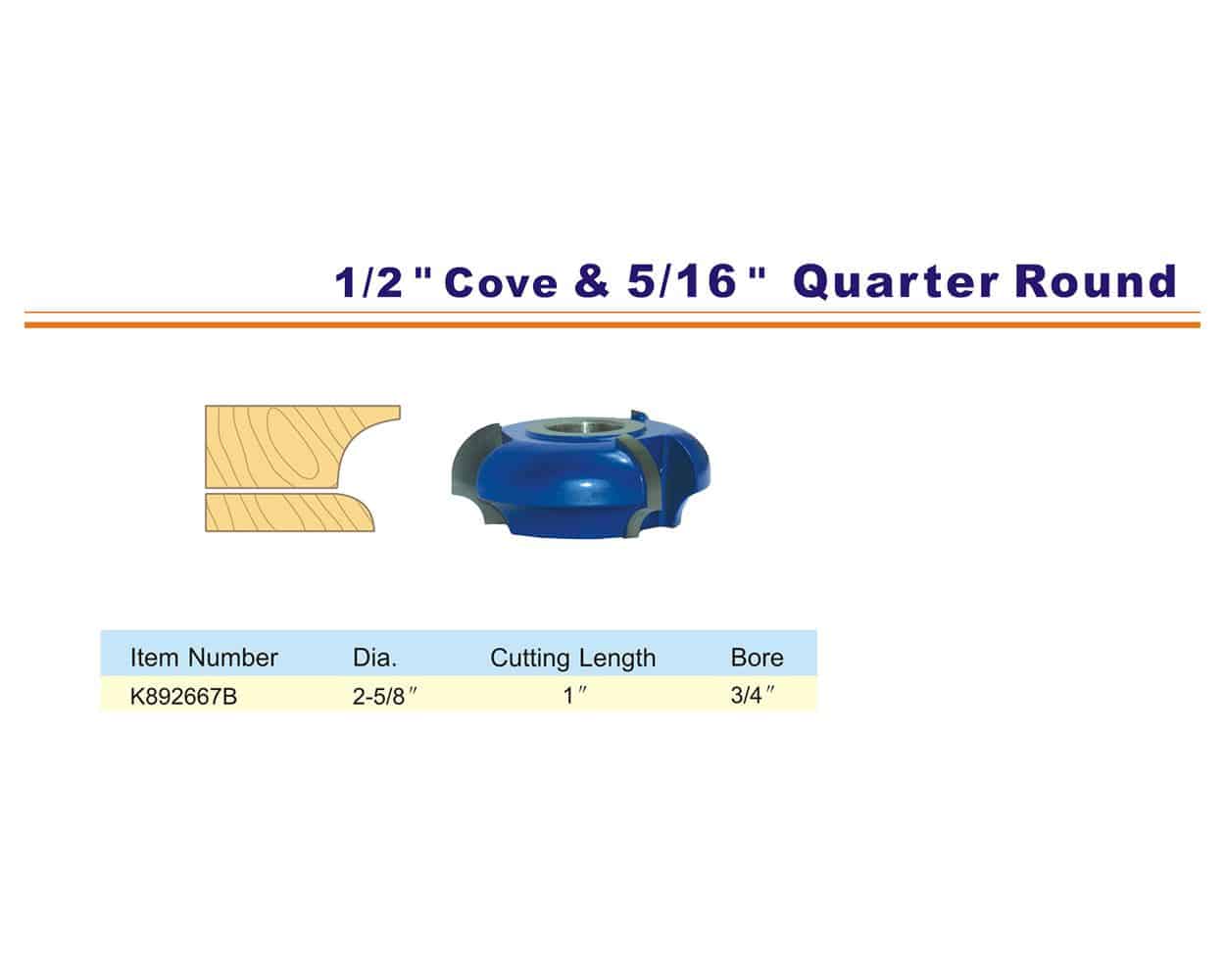 Use this 1/2 inch cove and 5/16 inch quarter round shaper cutter on your wood shaper for cove edges and quarter round edges. This shaper bit features top-quality C3 carbide. A great addition to your shaper cutter bits! Legend below explains sizing. Select your item(s) then click Add to Cart.