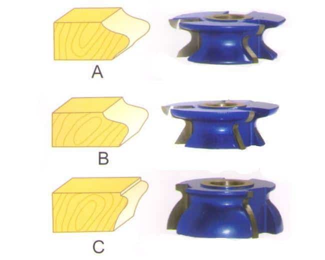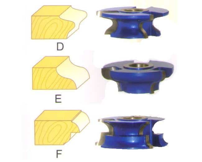 The Blue Tornado detail door edge shaper cutters are designed to finish kitchen door and drawer edges. Blue Tornado moulding heads feature top-quality C3 carbide. Extra thick carbide tips insure many re-sharpening opportunities and longer tool life. Legend below explains sizing. Select your item(s) then click Add to Cart.
