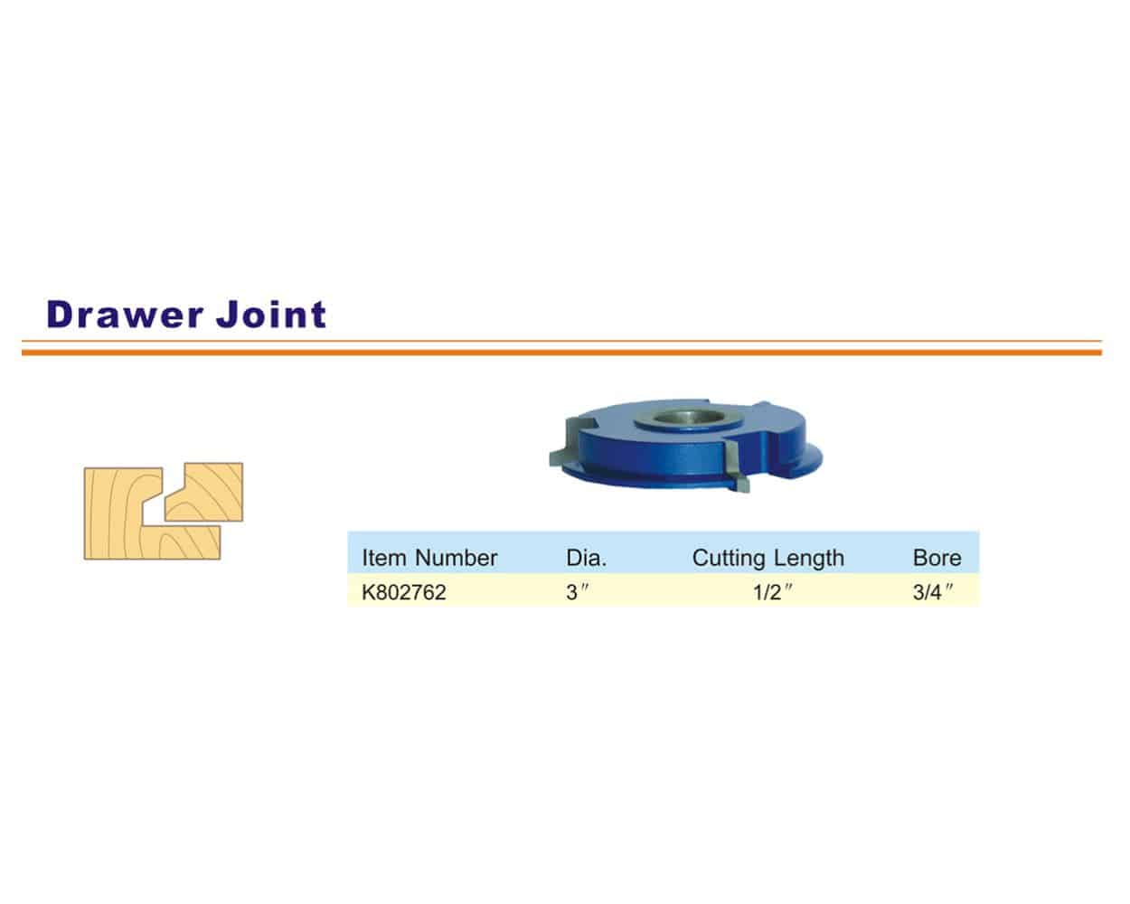 The Blue Tornado drawer joint shaper cutter will produce both sides of a drawer glue joint with strong and long-lasting results with a front drawer lip. This drawer lock joint shaper bit features top-quality C3 carbide. Extra thick carbide tips insure many re-sharpening opportunities and longer tool life. Legend below explains sizing. Select your item(s) then click Add to Cart.