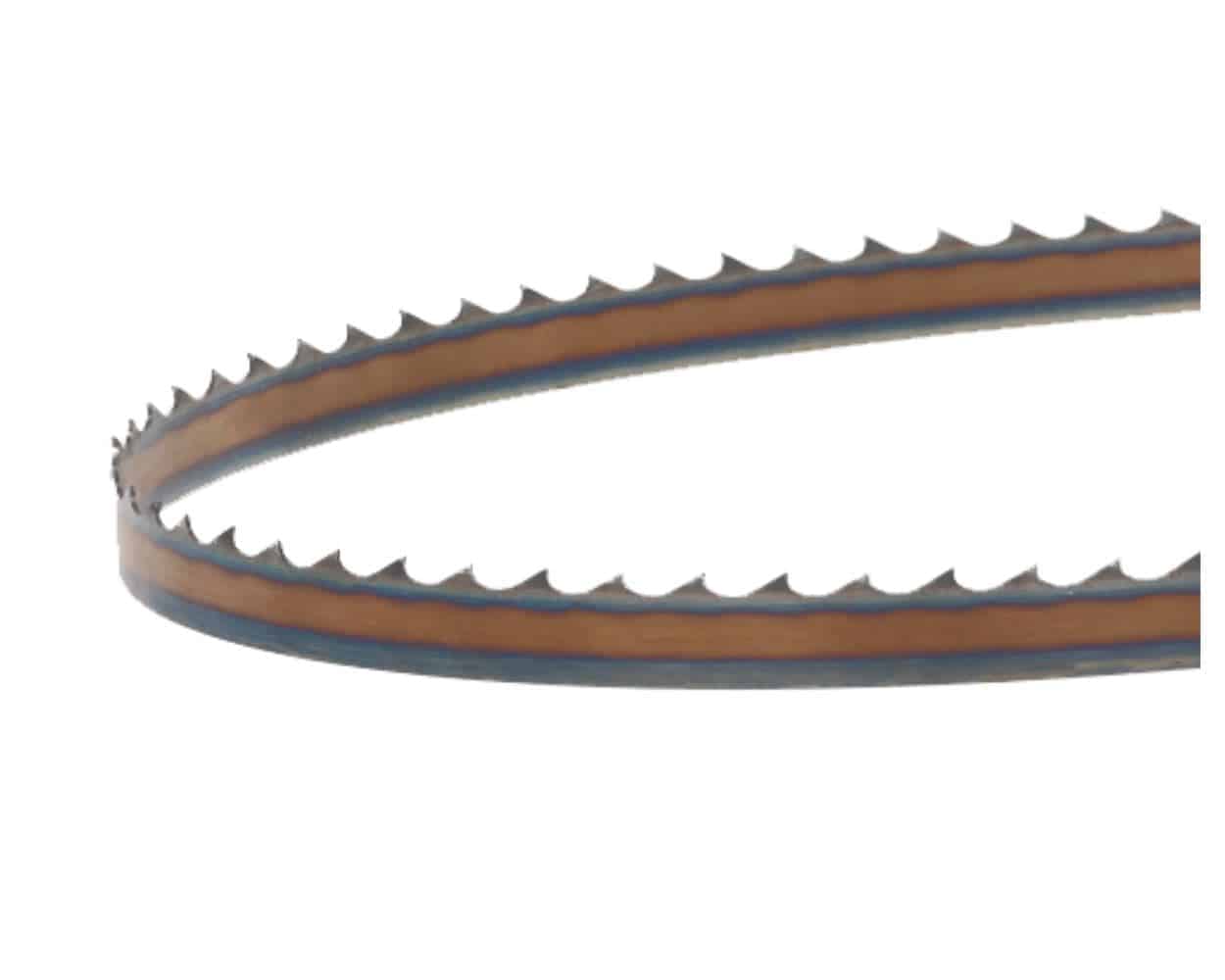 These blades are only available in 3/8 inch x 3tpi, 1/2 inch x 3tpi and 1/2 inch x 2tpi. These blades are unique in their body thickness, set, and rake angle. They are .032 thick, have a full alternate set, a unique rake angle of 8.5 degrees, and incorporate the unique geometry of our PC tooth design. These blades are primarily used by wood-turners and wood-carvers when roughing out blanks from burls and logs. Their performance is excellent if the thickness of your material exceeds 6 to 8 inches These blades are not meant to be used on three-wheel band saws or any saw with less than a 90 inch blade length or a wheel diameter of less than 14 inches.