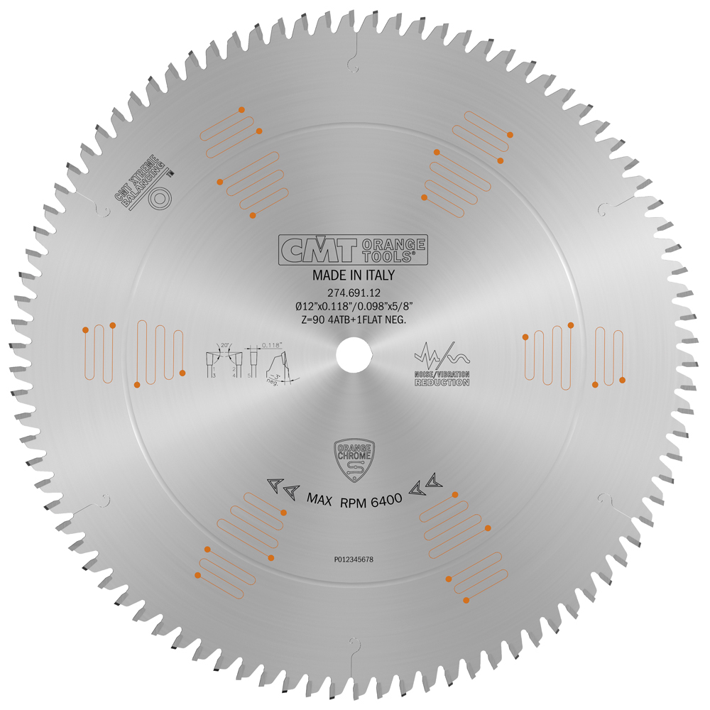 CMT Orange Tools Ultra Finish Sliding Compound 12”X5/8” T=90 Atb+Flat (-3° Neg) 274.691.12